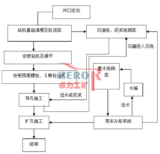 施工程序 反井鉆機導井法施工程序如下框圖