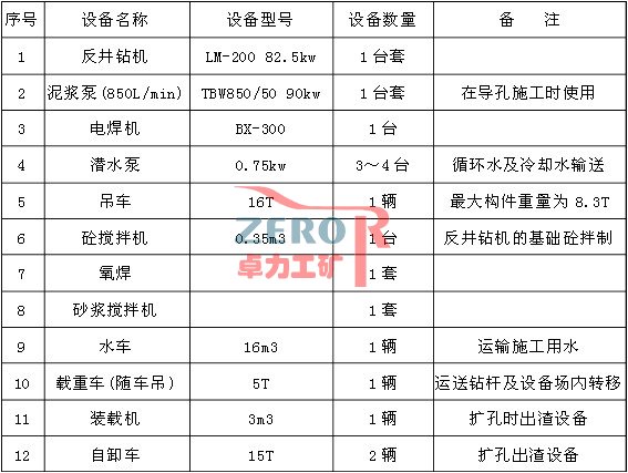 (1)機械設備組合 反井鉆機導井法施工分為導孔施工、擴孔施工兩個步驟。