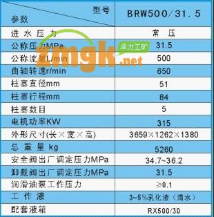 BRW500/31.5型乳化液泵與RX500/30型乳化液箱組成乳化液泵站,主要為大采高、厚煤層綜合機械化采煤液壓支架提供動力源,也可用于地面其它液壓設備。該泵站一般由兩泵一箱組成。對于高效高產工作面可以配置三泵兩箱。